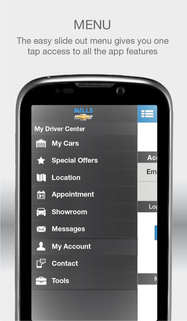 Make your vehicle ownership experience easy with the free Mills Chevrolet mobile app. This feature-rich app allows you to get the most out of your vehicle by helping you to maintain and organize essential car details like service history, as well as save money with mobile offers and coupons!