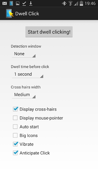 يتيح لك Dwell Click التحكم في هاتفك باستخدام جهاز تأشير مثل الماوس بلوتوث أو جهاز التحكم أو جهاز تتبع الرأس.