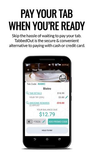 ยินดีต้อนรับสู่ TabbedOut แอพการชำระเงินมือถือที่ให้คุณดูและชำระเงินเช็คร้านอาหารหรือแท็บบาร์ด้วยโทรศัพท์ของคุณ ลืมเกี่ยวกับการรอบิลคำนวณการตรวจสอบแยกและส่งบัตรเครดิตของคุณไปยังคนแปลกหน้า TabbedOut ช่วยให้คุณสามารถชำระเงินเช็คหรือแท็บได้อย่างปลอดภัยเมื่อคุณพร้อมไม่ว่าจะอยู่ที่โต๊ะแถบถัดไปหรือในรถแท็กซี่ระหว่างทางกลับบ้าน ชำระเงินกับโทรศัพท์ของคุณตามเวลาของคุณเองรับข้อเสนอการประหยัดเงินและรู้สึกเหมือนเป็นวีไอพีไม่ว่าคุณจะไปที่ไหน TabbedOut เป็นวิธีที่รวดเร็วและปลอดภัยที่สุดในการชำระเงินที่ร้านอาหารและบาร์
